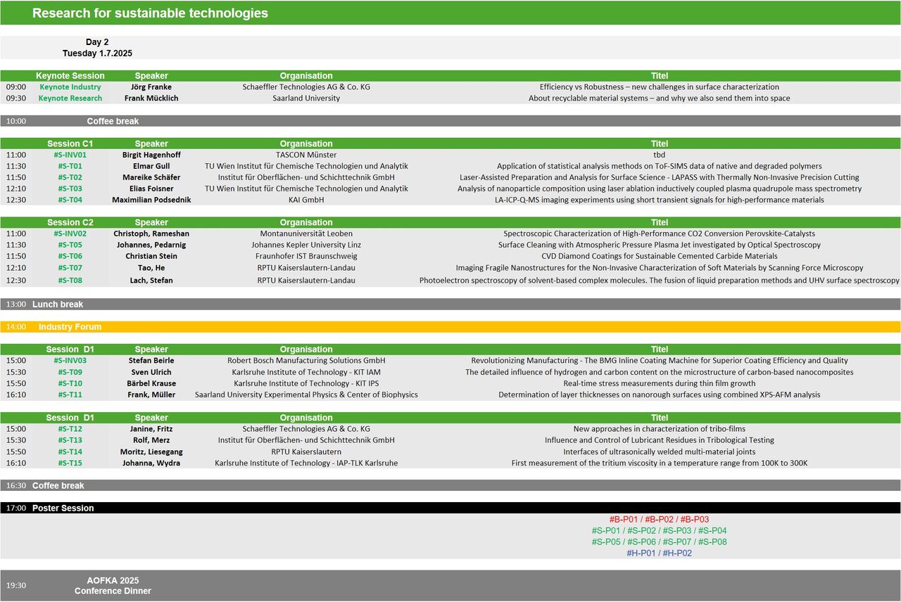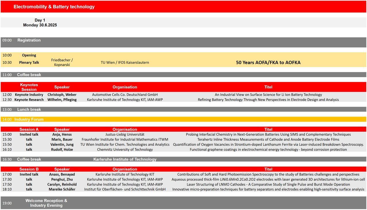 The AOFKA covers all areas of surface and solid state analysis and focuses on the application of the latest instrumental methods in basic research as well as in applied research and technology. The conference will provide information on the manifold research activities in this field through invited lectures and oral and poster presentations by the participating scientists.